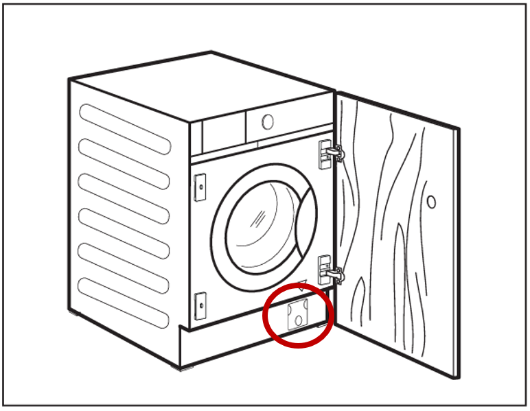 O filtro da bomba está localizado no canto inferior direito do aparelho, atrás do rodapé, que terá de ser baixado para aceder ao filtro.