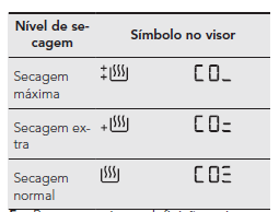 - Se a configuração dos níveis de secagem padrão não for definida corretamente, isso pode causar um resultado de secagem insatisfatório.